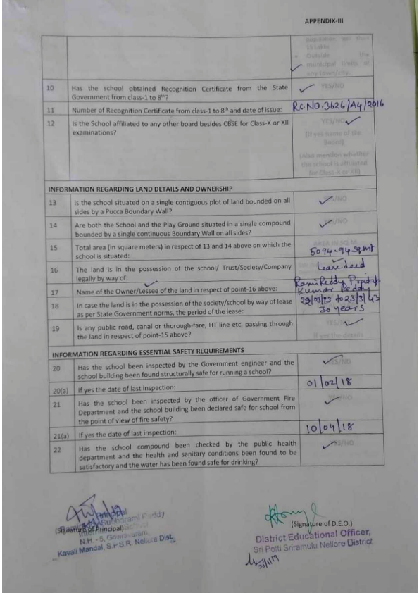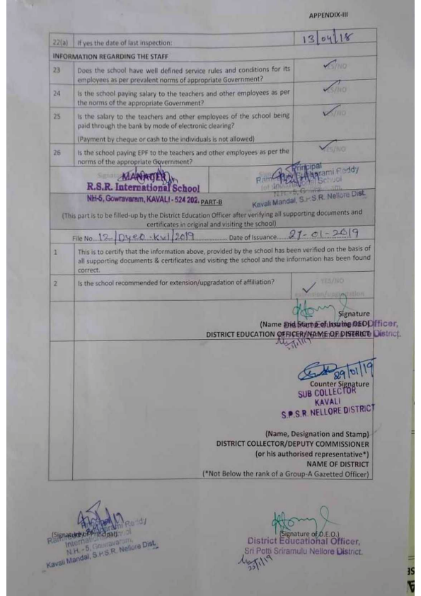 DEO CERTIFICATE SUBMITTED BY THE SCHOOL FOR AFFILIATION